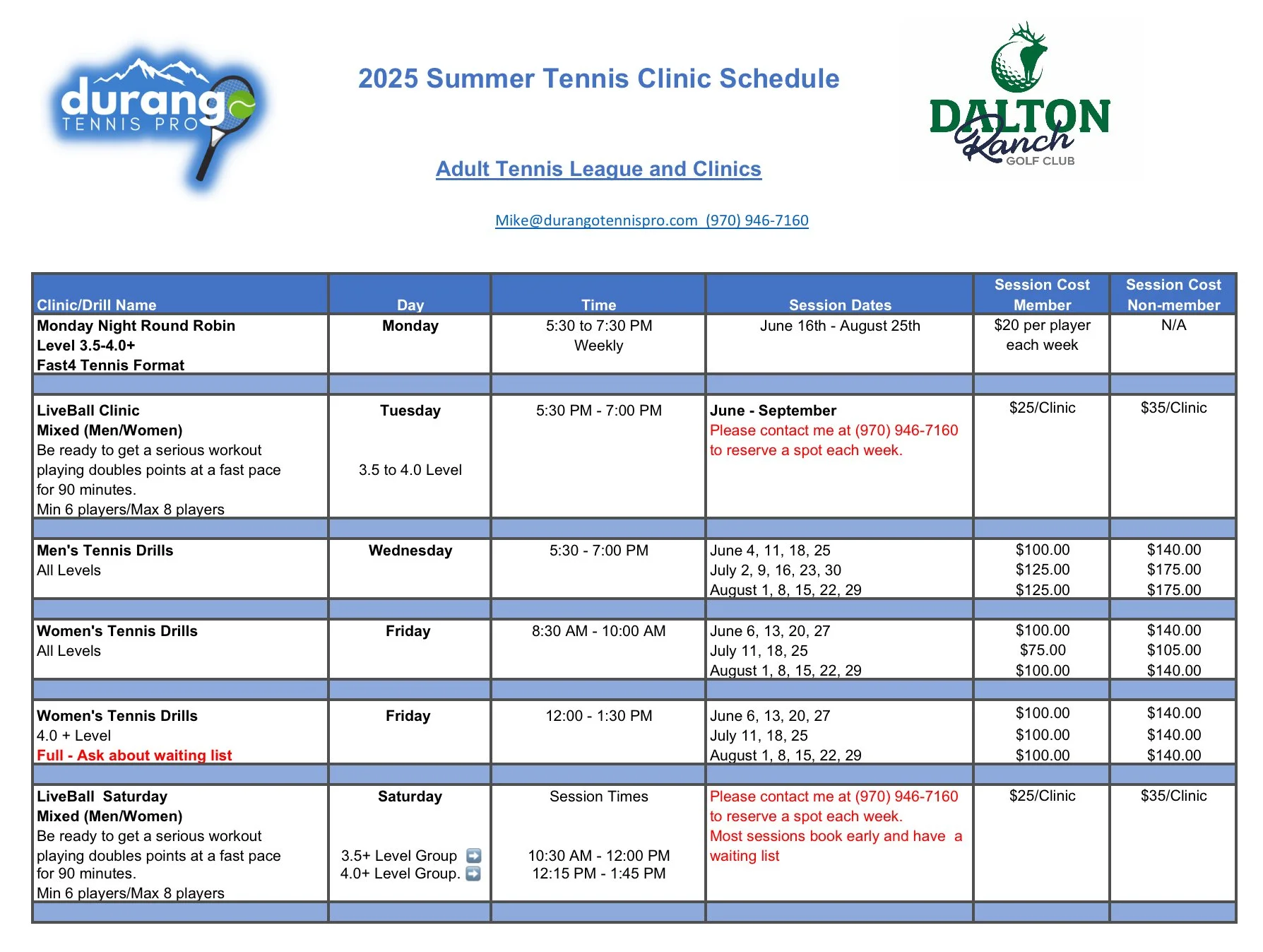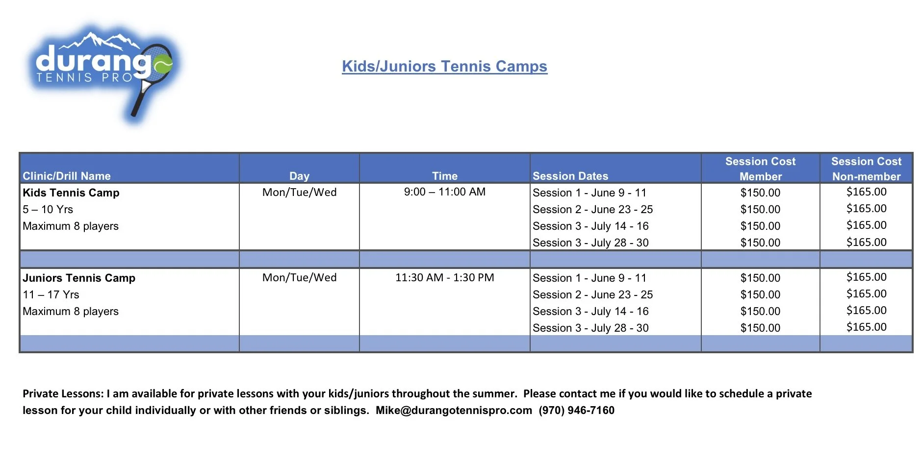 Please contact me to register for any of the Clinics/Drills listed below… Mike@DurangoTennisPro.com or (970) 946-7160